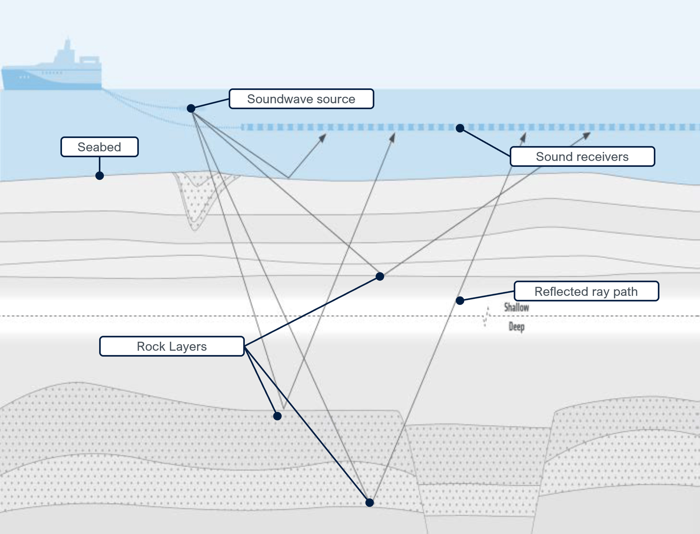 - Seismic acquisition involves generating controlled sound waves and recording their reflections to image subsurface geological layers.